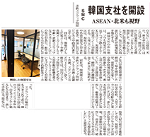 2020年5月11日発行の日刊産業新聞に弊社が開設した韓国支社についての記事が掲載されました。